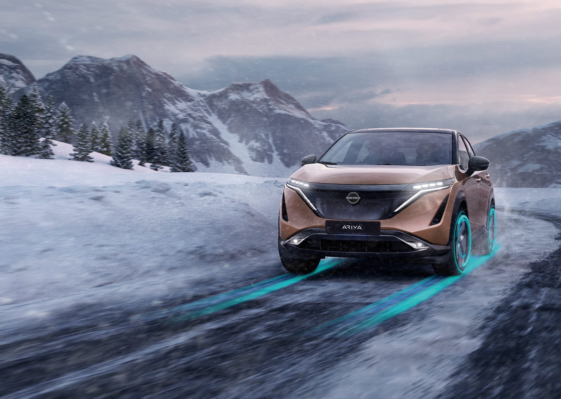 Grazie alla tecnologia e-4orce, i due motori di ARIYA distribuiscono la giusta potenza alle singole ruote. Una potenza che migliora il comfort, la sterzata in curva e la trazione su ogni terreno, mentre l’e-Pedal aggiunge divertimento alla guida.